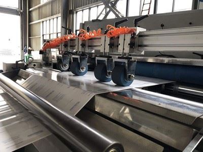 - El sistema de cortado de cuchillas en cadena está especialmente diseñado para cortar films PVC y PET (opcional).
